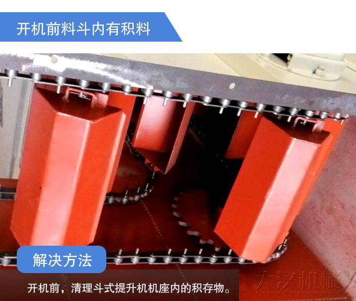 解決辦法:開(kāi)機(jī)前,清理斗式提升機(jī)機(jī)座內(nèi)的積存物。