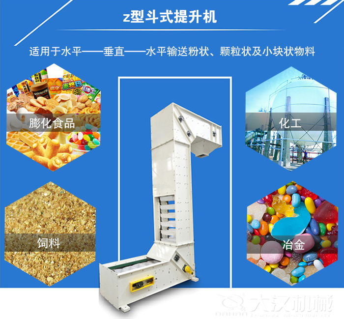 應(yīng)用行業(yè):適用于垂直輸送磨琢性較大的粉狀、粒狀、及小塊狀物料,如糧食、煤、水泥、碎礦石等,物料溫度不超過250°C。