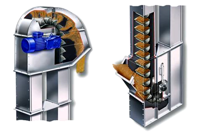 不銹鋼斗式提升機(jī)電機(jī)轉(zhuǎn)動聯(lián)軸器、頭輪和畚斗帶運(yùn)轉(zhuǎn),裝在畚斗帶上的畚斗將物料從提升機(jī)底部提升到所需的高度。