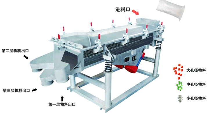 篩分精度高、處理量大、結構簡單、耗能少、噪音低、篩網使用壽命長、密封性好、無粉塵溢散、維修方便、可用于流水線生產中的自動化作業(yè)。