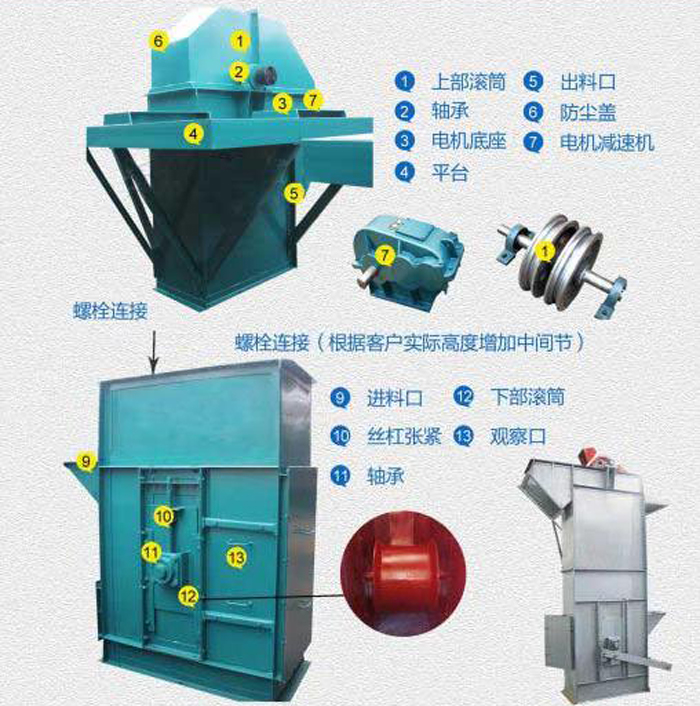 斗式提升機的牽引構件是實現(xiàn)物料提升的重要部件,一般是根據(jù)用戶的提升高低及提升物料的溫度來決定的。