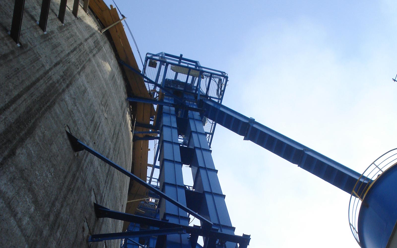 傾斜斗式提升機的牽引構件在傾斜角度過大時需增設支撐牽引構件的裝置,而使結構復雜,因此一般情況下多采用垂直斗式提升機。當垂直式斗式提升機不能滿足特殊工藝要求時,才采用傾斜斗式提升機。