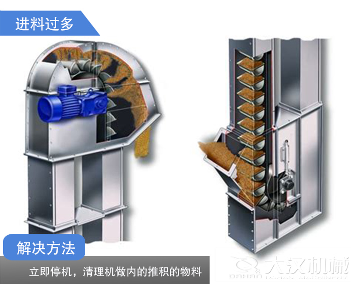 解決辦法:開(kāi)機(jī)前,清理斗式提升機(jī)機(jī)座內(nèi)的積存物。