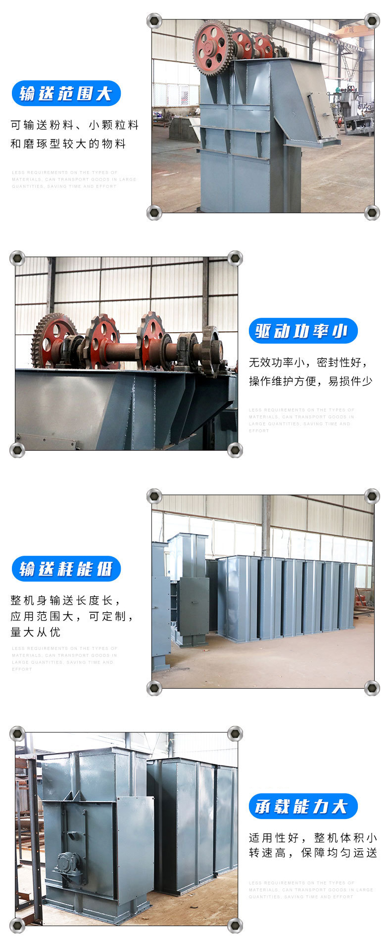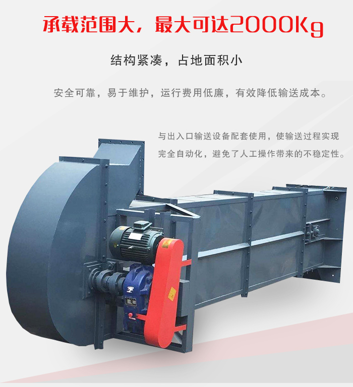 料斗:固定于膠帶(或牽引鏈)上,有三種:深斗(適合于松散物料),淺斗(黏性較大的物料),三角斗(比重大且成塊狀的物料)。