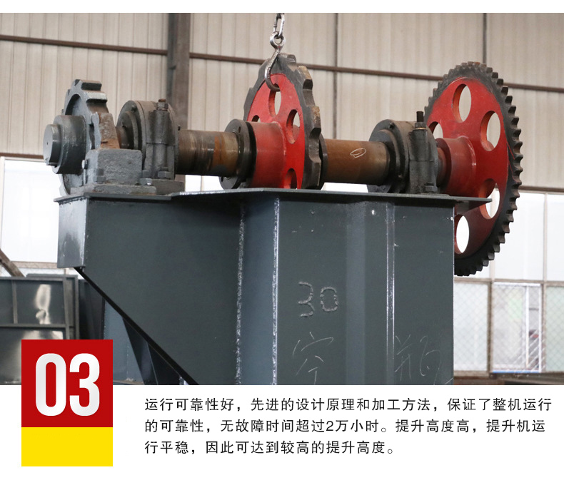3.運(yùn)行可靠性好,先進(jìn)的設(shè)計(jì)原理和加工方法,保證了整機(jī)運(yùn)行的可靠性,無(wú)故障時(shí)間超過(guò)2萬(wàn)小時(shí)。提升高度高,提升機(jī)運(yùn)行平穩(wěn),因此可達(dá)到較高的提升高度。